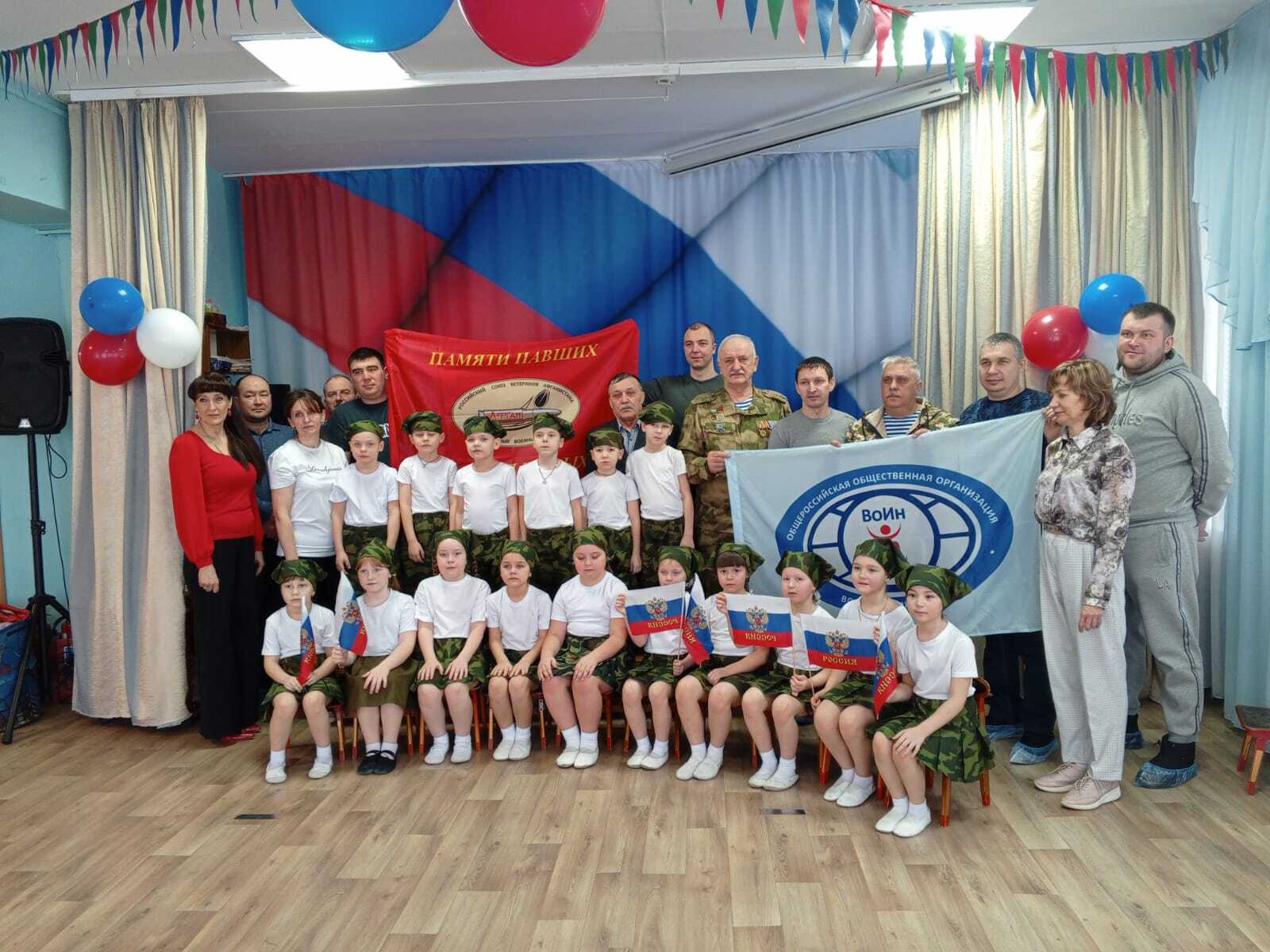 Встреча членов организации "ВоИн" с воспитанниками детского сада МО "Петушок" .Член правления организации "ВоИн" Плетнев В.Н., члены организации "ВоИн" Мушарапов Р.А. , Шмелев А.Е. Воспитанники детского сада выступили с подготовительной программой и поздравили ветеранов с наступающим праздником 23 февраля , в свою очередь Плетнев В.Н. поблагодарил коллектив детского сада и вручил благодарственное письмо за помощь в сборе гуманитарной помощи для бойцов на СВО.