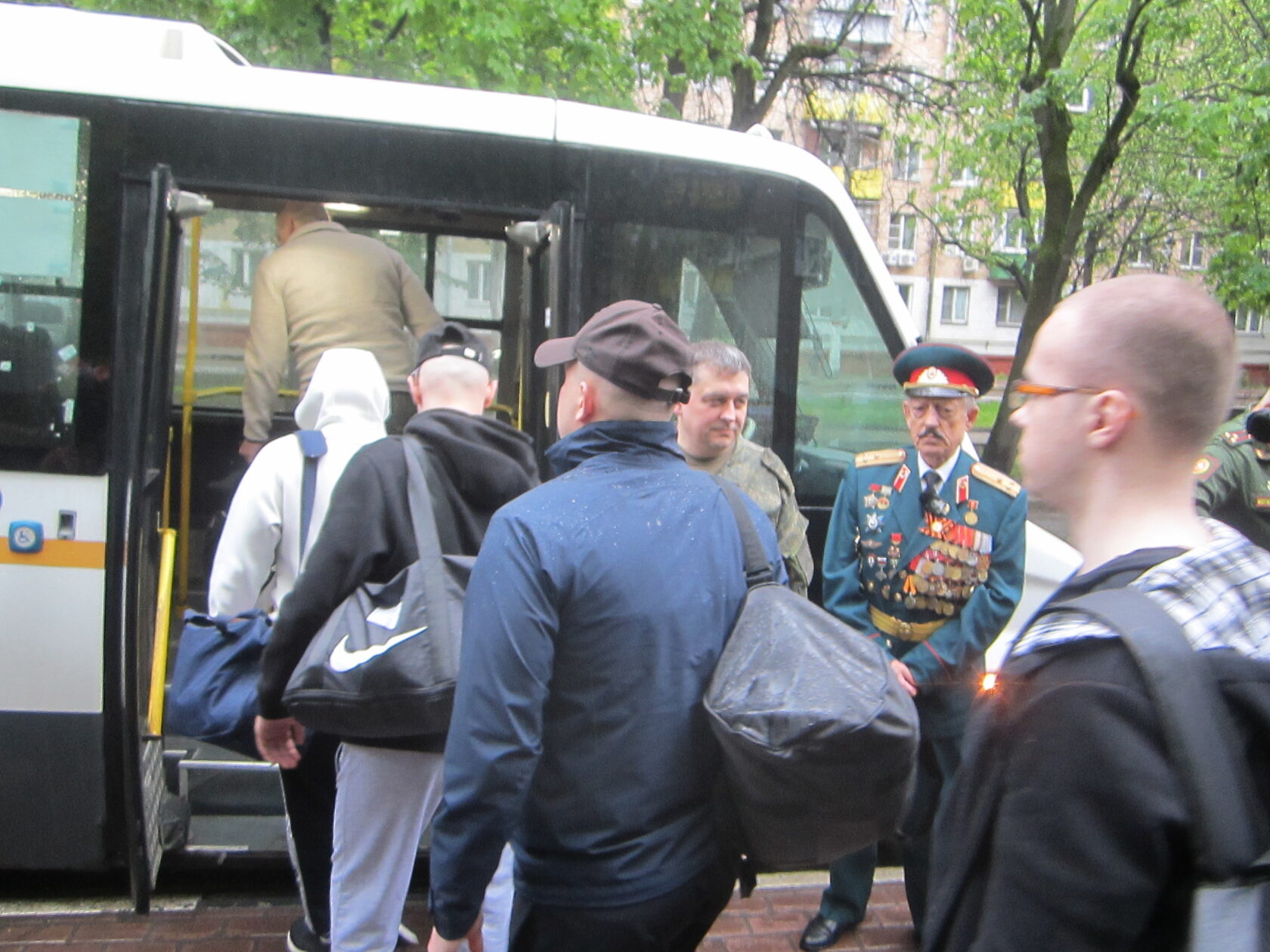 На днях по приглашению военного комиссара полковника Темирова Арсена Тимуровича группа ветеранов ОООВИ «ВоИн» к 6.00 прибыла к зданию военкомата, где уже собралось много родственников убывающих воинов. Несмотря на накрапывающий дождь, на улице чувствовалось возвышенное настроение. Будущие воины в эти минуты осознавали свое возмужание и переживали за остающихся дома родственниках, а провожающие переживали за будущее своих детей, любимых.